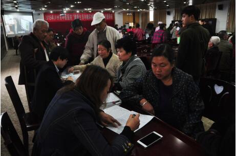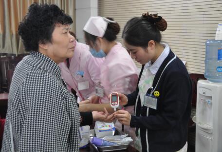 醫(yī)院護士為市民測量血糖