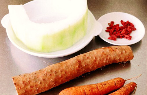 做法:山藥50克,冬瓜150克,放至鍋中慢火煲30分鐘,調(diào)味后即可飲用??山∑?,益氣,利濕。