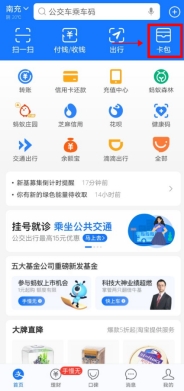 支付寶首頁點擊“卡包”