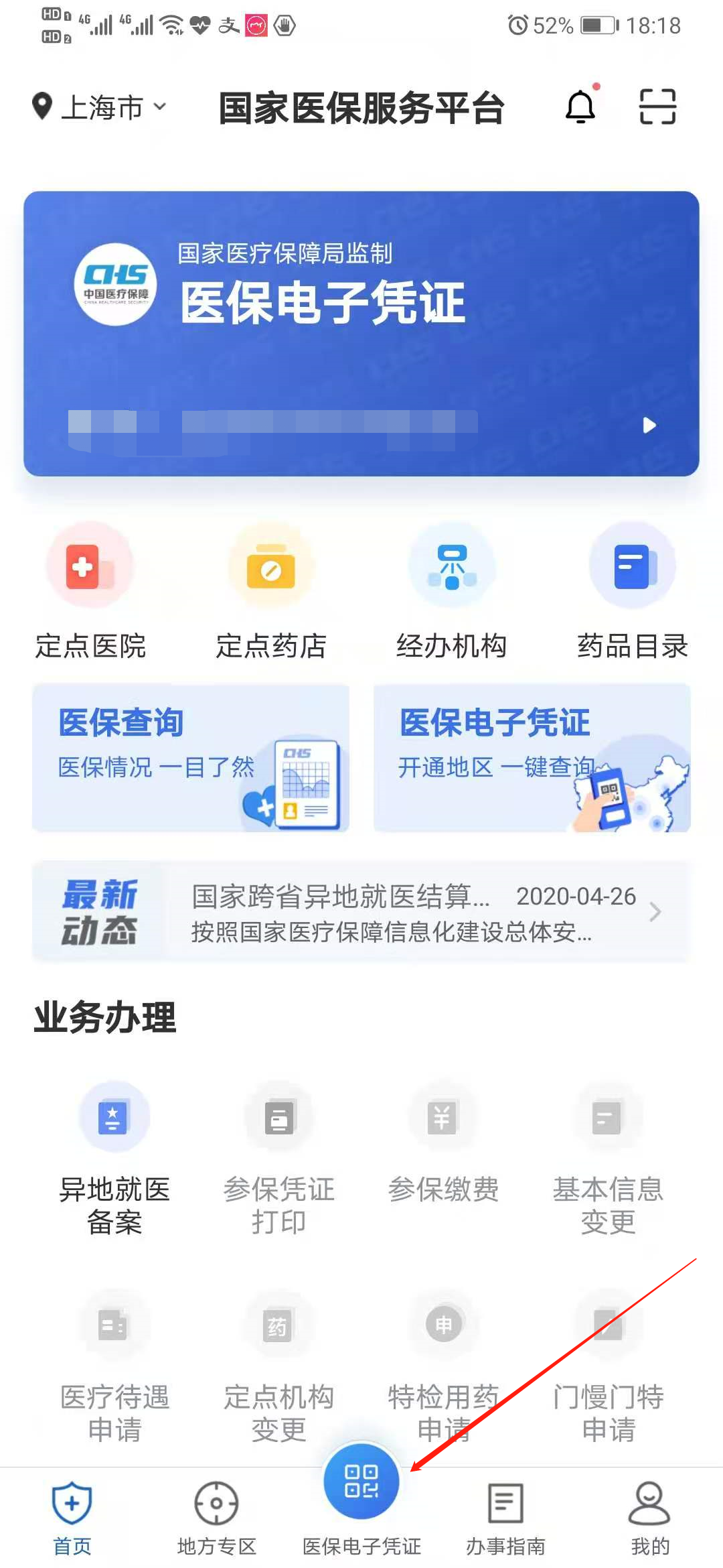進(jìn)入國(guó)家醫(yī)保服務(wù)平臺(tái)APP首頁(yè),需要首先登錄個(gè)人醫(yī)保電子憑證。