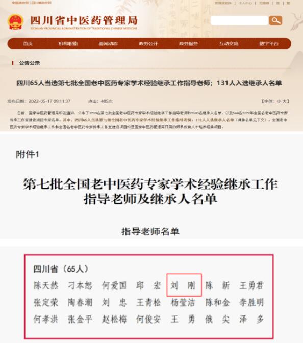 日前,國(guó)家中醫(yī)藥管理局印發(fā)通知,公布了544名2022年全國(guó)名老中醫(yī)藥專家傳承工作室建設(shè)項(xiàng)目專家名單,以及1299名第七批全國(guó)老中醫(yī)藥專家學(xué)術(shù)經(jīng)驗(yàn)繼承工作指導(dǎo)老師和2605名繼承人名單。經(jīng)逐級(jí)遴選,瀘州市中醫(yī)院主任中醫(yī)師侯平璽全國(guó)名老中醫(yī)藥專家傳承工作室獲批建設(shè),四川35人入選,瀘州僅4人。同時(shí),醫(yī)院主任中醫(yī)師劉剛入選第七批全國(guó)老中醫(yī)藥專家學(xué)術(shù)經(jīng)驗(yàn)繼承工作指導(dǎo)老師,四川65人,瀘州僅4人。醫(yī)院腦病科醫(yī)生余寧生,劉松入選繼承人名單。