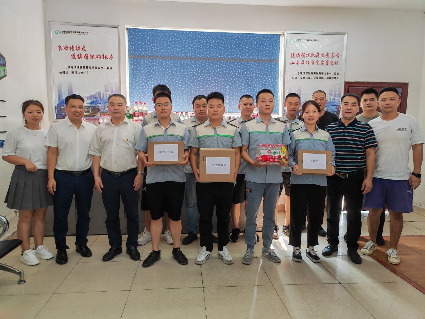 當(dāng)天上午11時,工作人員頂著烈日來到第三站——瀘州市公交集團(tuán)。瀘州市公交集團(tuán)副總經(jīng)理先義表示,目前瀘州有1200多輛公交車,其中300多輛沒有安裝空調(diào),高溫天氣確實給這些公交車司機增加了困難,但有市中醫(yī)院等愛心單位的關(guān)心,讓司機師傅們在工作時,也感受到帶來的清涼,即便在高溫天氣下,也能保護(hù)好自己,做到安全駕車。