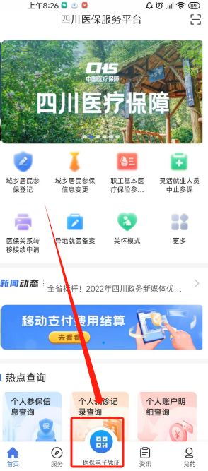 ●第一步:點擊APP首頁屏幕最下方【醫(yī)保電子憑證】;