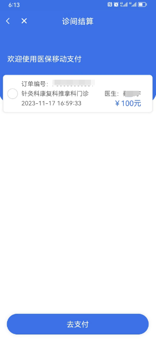 注意:初次移動支付需要綁定相應(yīng)銀行卡,用于支付醫(yī)?;鸷蛡€人賬戶以外的現(xiàn)金部分。