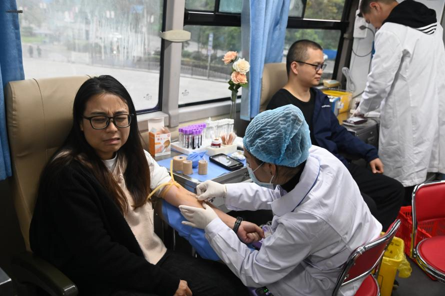 前來自愿獻(xiàn)血的干部職工,在瀘州市中心血站工作人員的指引下,有條不紊地進(jìn)行獻(xiàn)血前的一系列準(zhǔn)備工作,紛紛加入獻(xiàn)血熱潮。