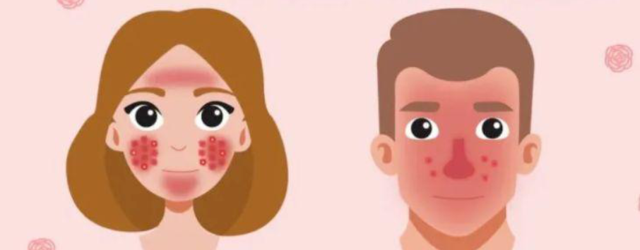 有些人表面看起來皮膚光滑白皙,甚至還帶有紅潤的“氣色”,實際上臉會經(jīng)常刺痛,還會有燒灼的感覺,拿起鏡子一照,竟然還有好多紅血絲。還有些人看起來只是長了兩個痘痘,也不是很明顯,但靠近鼻部的兩邊面頰上布滿了紅斑,很多人都會覺得是皮膚過敏。