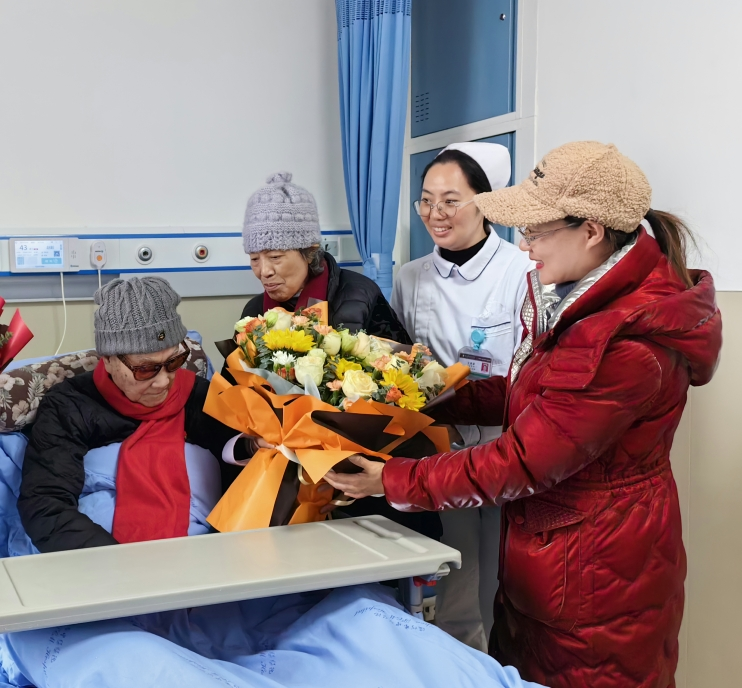 醫(yī)院為了表達(dá)對這位老黨員的敬意,特意安排了一場溫馨而隆重的生日慶?;顒?。醫(yī)護(hù)人員們精心準(zhǔn)備了生日蛋糕和鮮花,還邀請了江陽區(qū)退役軍人事務(wù)管理局的田敏主任前來病床旁慰問,共同為趙老送上最真摯的祝福。