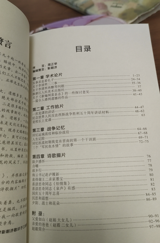 我們還有幸欣賞到了趙老的自傳《人生散片》,書中的小章節(jié)《戰(zhàn)爭回憶》讓人感受到了他在運(yùn)城戰(zhàn)役和臨汾戰(zhàn)役中的英勇與智慧;《一次黨課的講話》則展現(xiàn)了他作為敘永師范校長的責(zé)任與擔(dān)當(dāng);《三個(gè)“軍民魚水情”的故事》則讓我們感受到了軍民之間的深厚情誼。