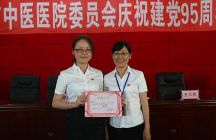 醫(yī)院副院長吳智惠為演講比賽一等獎獲得者繆萍萍頒獎