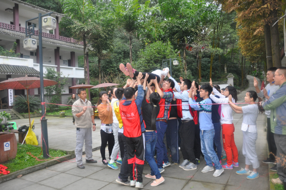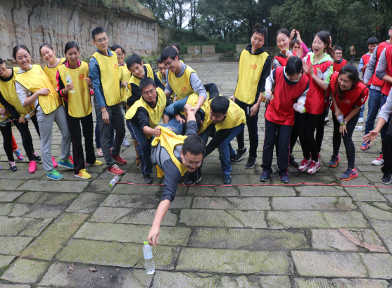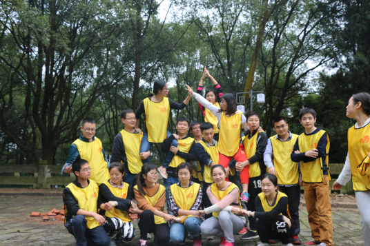 參加人員被分為紅隊和黃隊兩支團隊,通過集體討論,確定了各自的隊名、隊長和口號?;顒又?,大家相互鼓勵、相互幫助、團結(jié)一心、共同完成了破冰、群龍取水、穿越電網(wǎng)、信任背摔、 挑戰(zhàn)越障等一系列拓展項目,體現(xiàn)了濃厚的集體歸屬感和團隊意識。每輪項目結(jié)束后,大家都會在一起相互商討、爭相發(fā)言,分享親身體驗的過程和成功的喜悅,尤其是學(xué)會了如何去溝通,如何去克服心理障礙,如何突破自我去釋放正能量戰(zhàn)勝困難。
